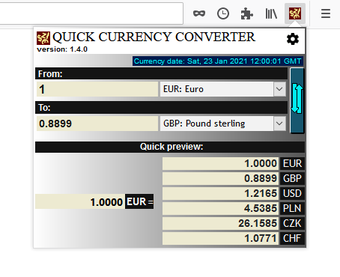 빠른 통화 변환기는 사용자가 통화를 원활하게 변환할 수 있도록 설계된 Firefox 확장 프로그램입니다. 이 구독 기반 도구는 사용자 친화적인 인터페이스로 여러 통화 간의 쉬운 변환을 허용합니다. 사용자는 빠른 접근을 위해 최대 여섯 개의 통화를 정의할 수 있어 자주 여행하는 사람이나 온라인 쇼핑객에게 이상적입니다. 이 확장 프로그램은 다양한 지역에서의 다재다능성을 보장하는 전 세계적으로 인정받는 통화의 폭넓은 범위를 지원합니다.